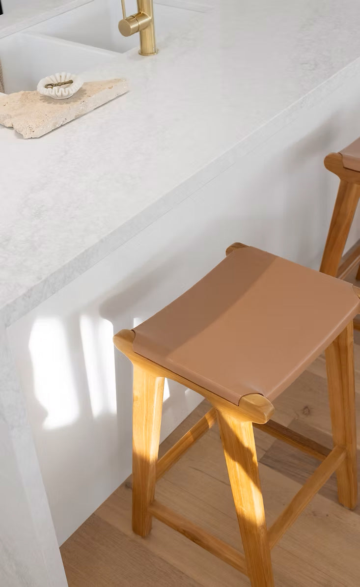 ~ Bar Stools: L3 Home Casey Flat Leather Barstool in Nude Tan